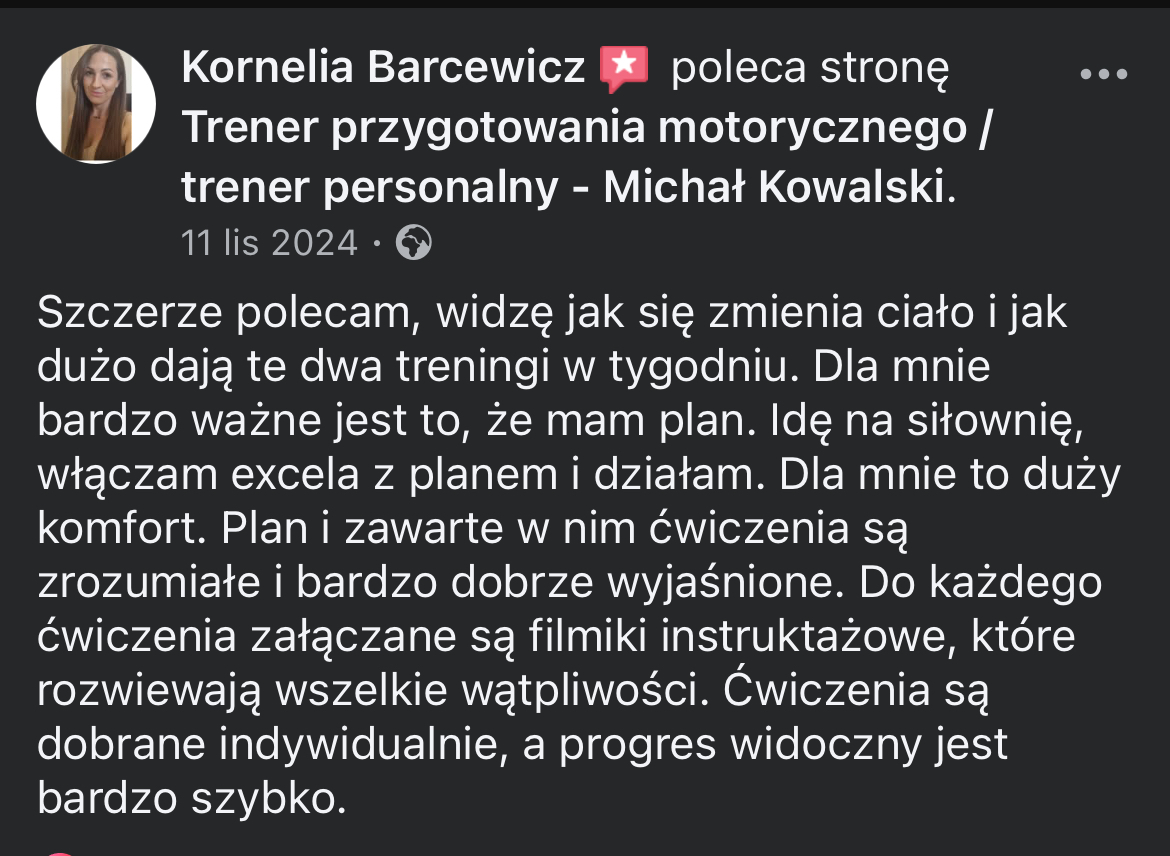Gotowe plany nie uwzględniają Twoich słabości, historii urazów celów ani czasu. Potrzebujesz czegoś dopasowanego do Twojego ciała i życia.