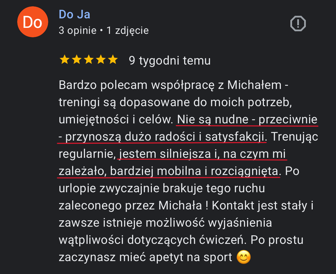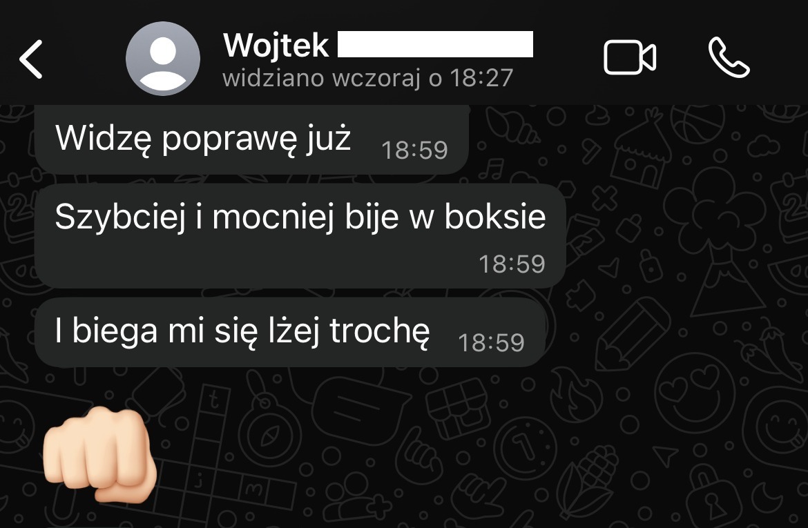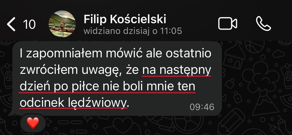 Dodatkowo dążyłem do budowy sprawnego ciała bez ograniczeń, aby móc cieszyć się pełnią życia przez długie lata bez bólu.