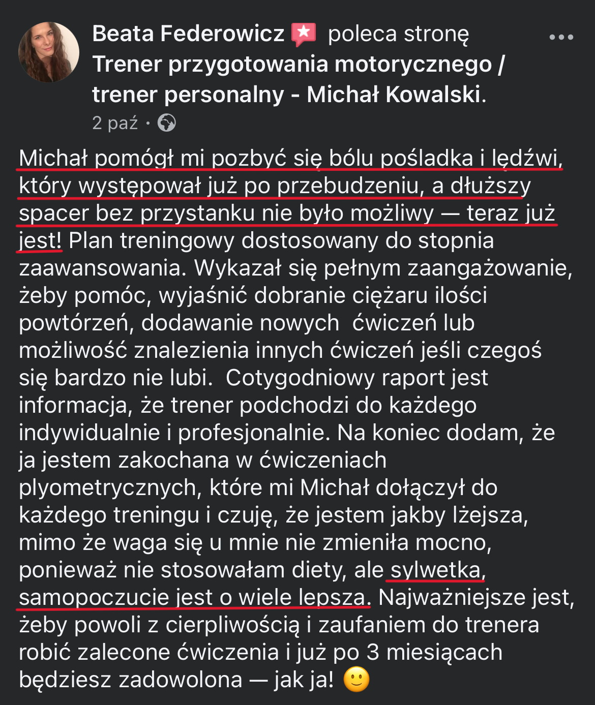 Chcesz wrócić do sprawności lub wejść na wyższy poziom, ale nie wiesz, jak to poukładać. Potrzebujesz kogoś, kto przeprowadzi Cię przez cały proces — krok po kroku.